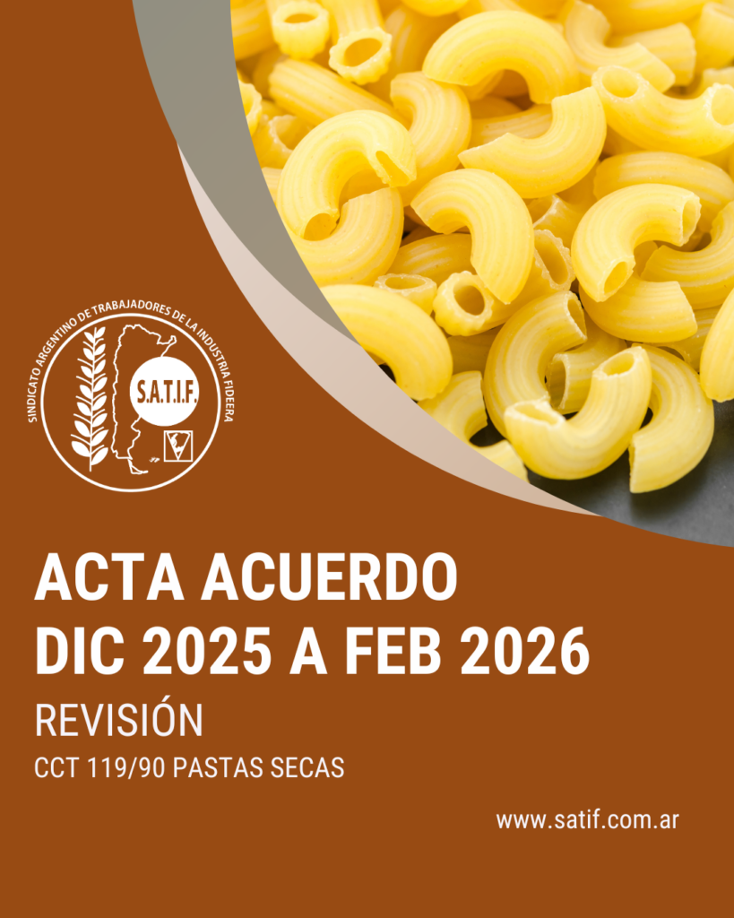 Se puede consultar el Acta Acuerdo y Escala Salarial de la revisión de diciembre 2025 a febrero 2026 de Pastas Secas haciendo click aquí.